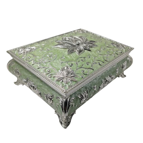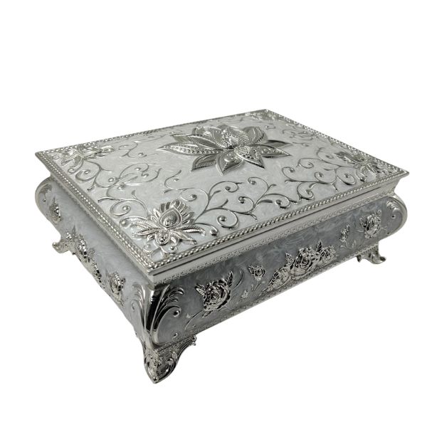 Engraved brass jewellery box, stylish and durable for safe keeping.